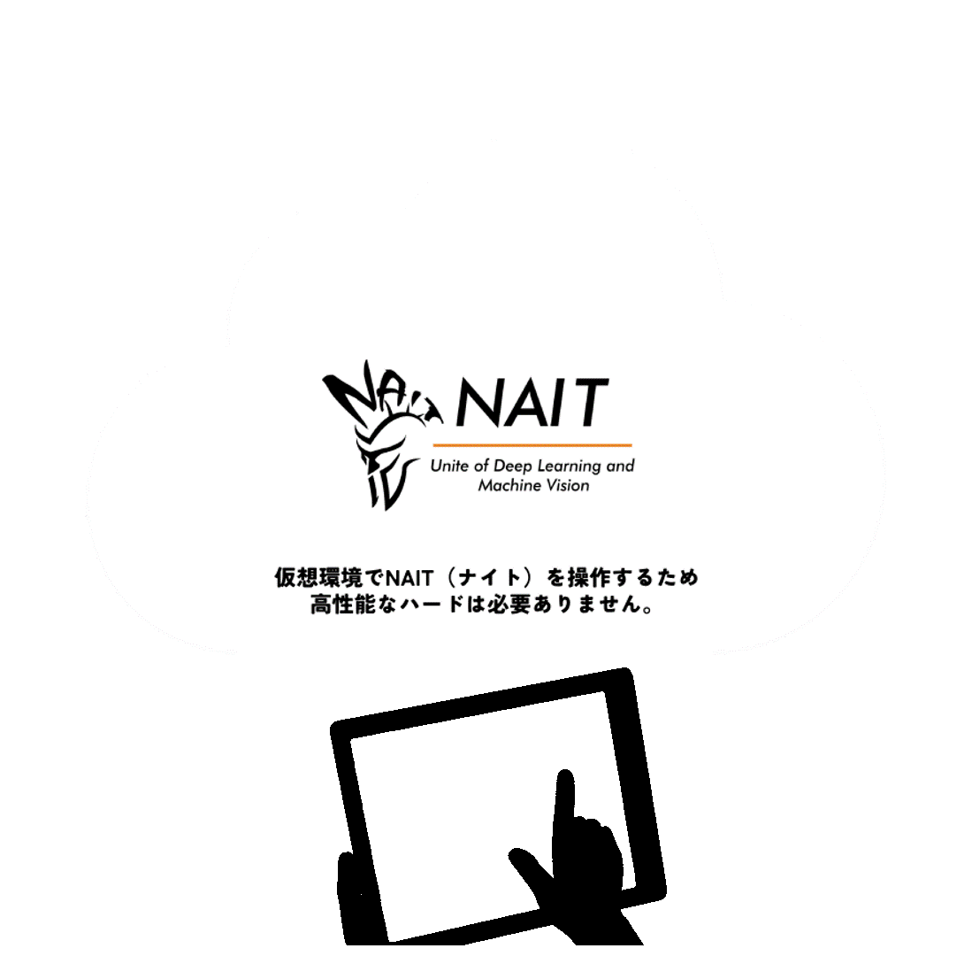 ”NAIT”(ナイト)は産業用途向け外観検査AIの導入を実現することが可能なディープラーニングの画像解析ソフトです。 難しいスキルを必要とせず、アプリケーションベースでディープラーニングを利用することができます。 扱いやすいGUIと”オートディープラーニング機能”によりパラメーターの設定がほとんど必要ありませんので非常に簡単に ディープラーニングを 使うことが可能です