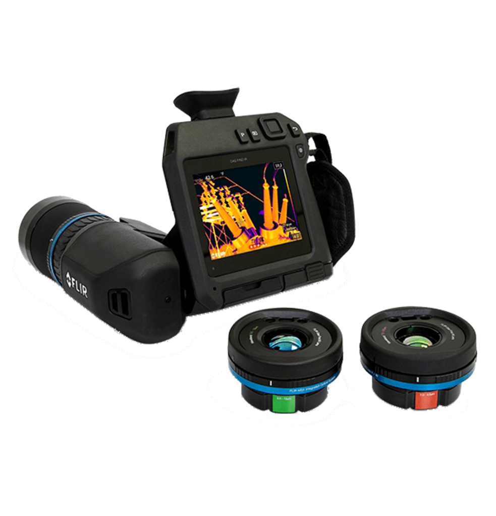 Teledyne FLIR社のガス検知カメラFLIR GF77は、メタン、六フッ化硫黄 (SF6)、エチレン、アンモニア、その他のガス排出を検知する交換可能なレンズオプションを備えた画期的な非冷却光学ガス検知カメラです。GF77は、ガス検出と放射温度測定の両方が可能な赤外線検査を行うことができるため、電力会社、石油・天然ガス事業、化学/製造施設、食品・農業産業、一次対応者に最適です。